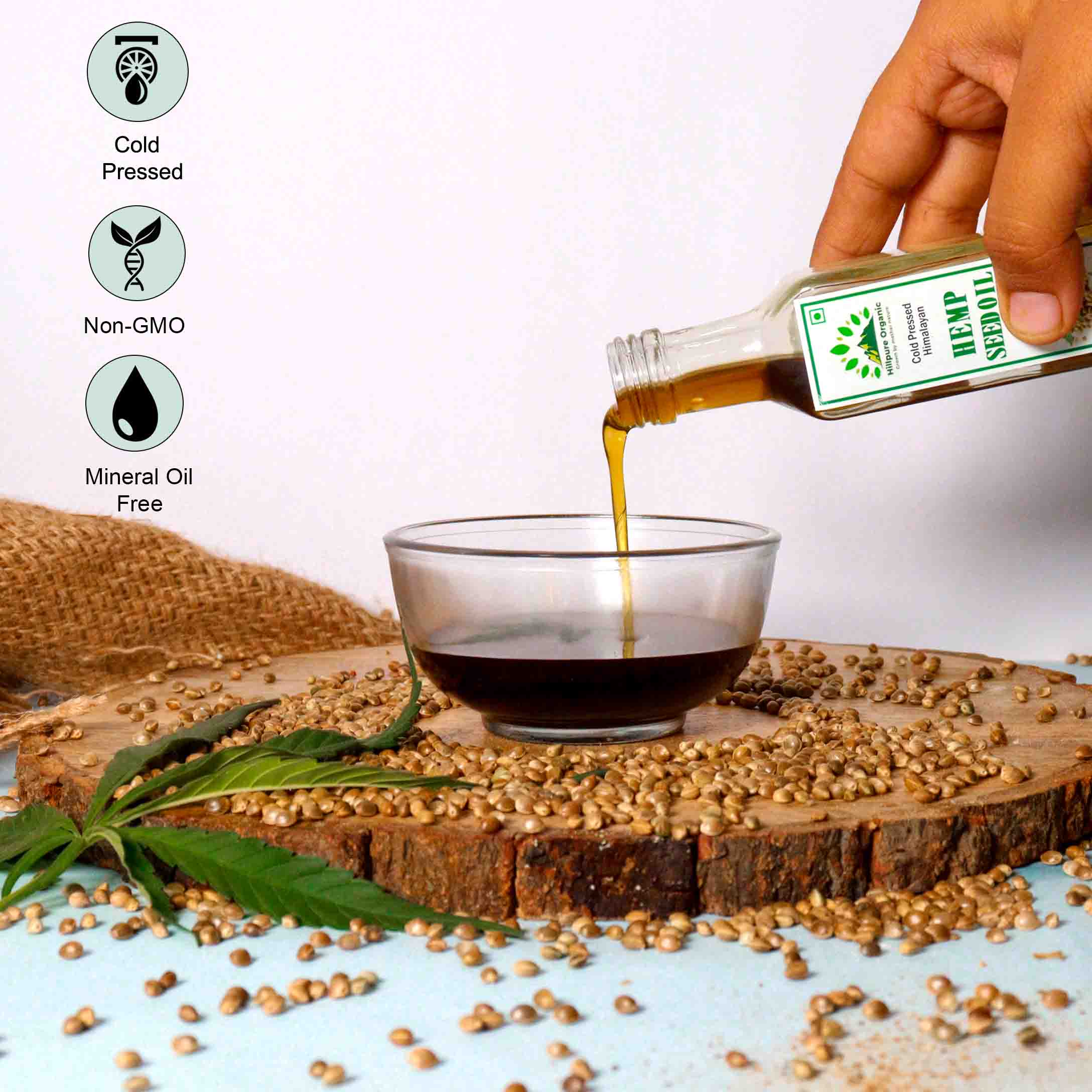 Hillpure Organic Cold Pressed Himalayan Hemp Seed Oil for hair growth, skin care, face, For External Use & Stunning Youthful Looks (65 ml, Glass Bottle)