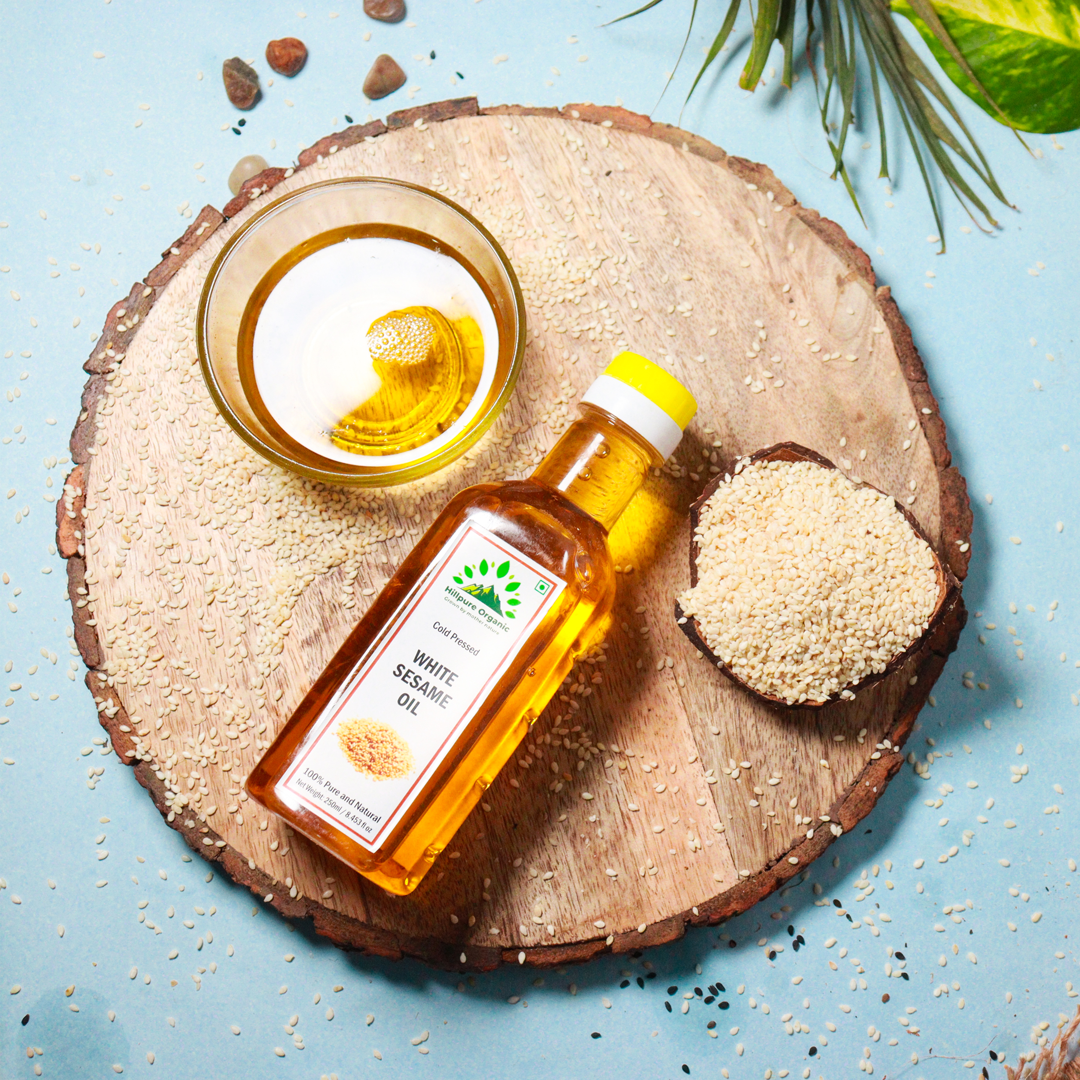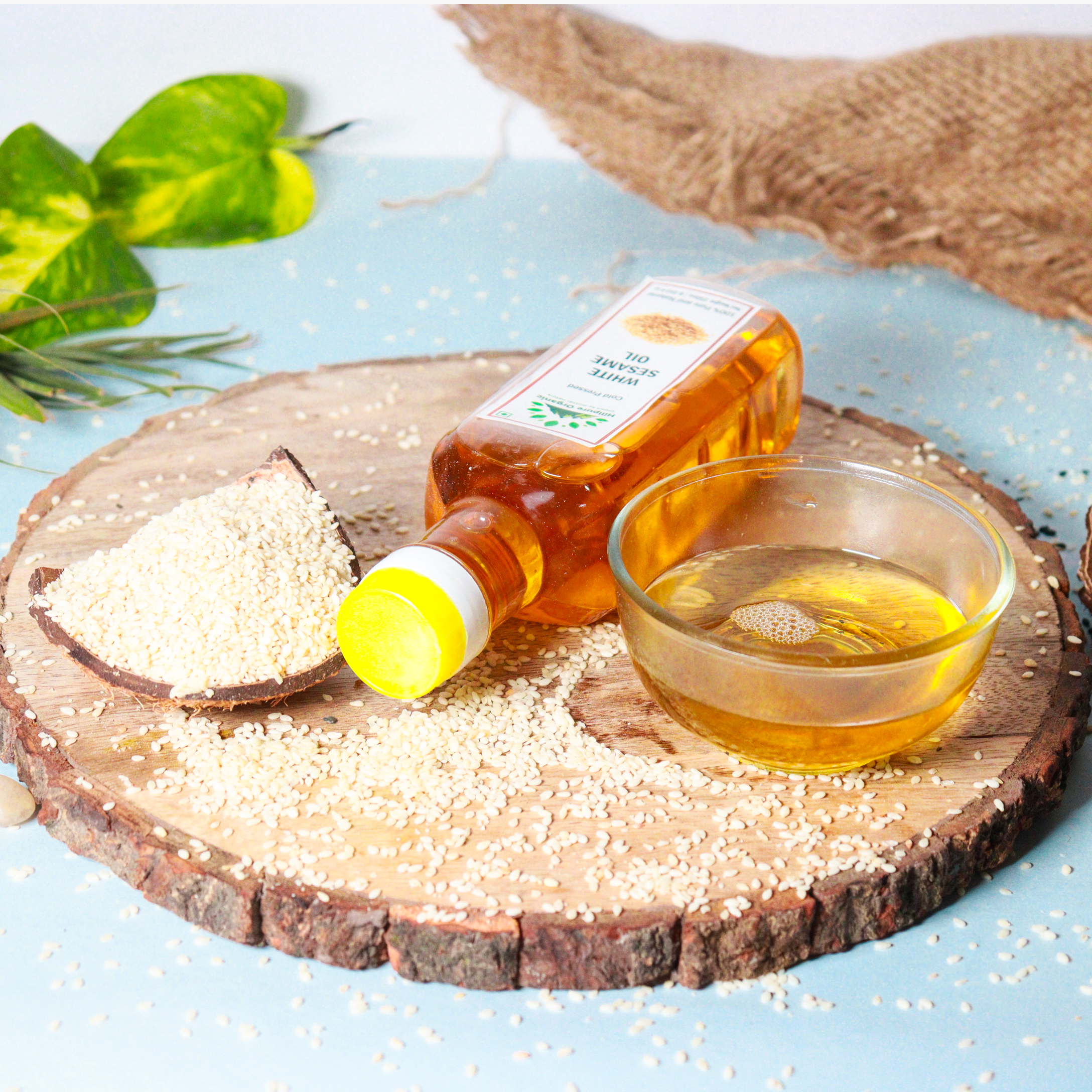 White Sesame Oil from HillPure Organic is a cold-pressed, unrefined oil extracted from white sesame seeds. It has a light yellow color and a mild, nutty aroma. This oil is rich in essential nutrients, including healthy fats, vitamin E, and minerals like calcium, magnesium, and phosphorus. It is suitable for all skin types, including mature and dry skin, and can deeply hydrate the skin without leaving an oily residue. The oil also contains antioxidants like vitamin E and sesamol, which help protect cells from damage and promote overall health.The health benefits of Sesame oil include its ability to improve hair and skin health, stimulate strong bone growth, help maintain good heart health, protect infant health, boost your dental health, improve the digestive process, and lower inflammation, check BP and so on. Hundred benefits out of Sesame Oil. Healthiest Oil for our body.