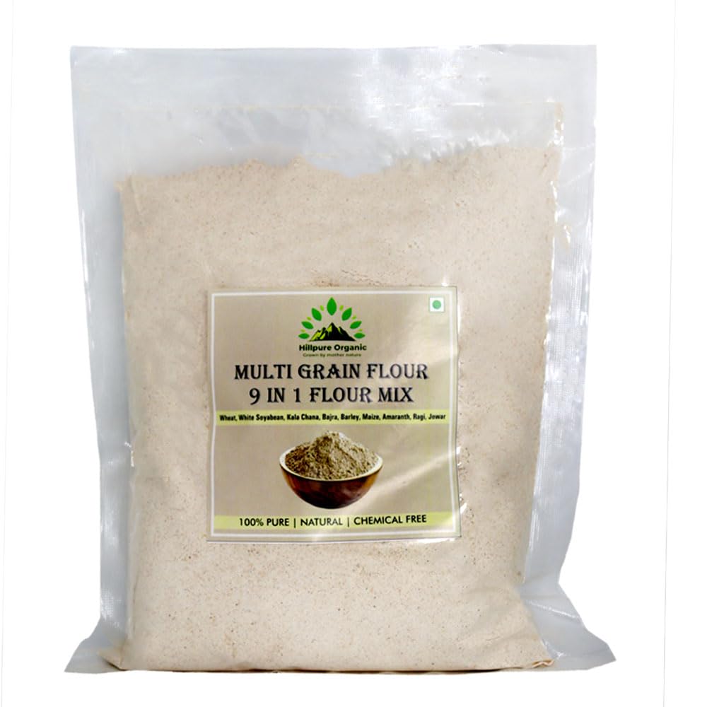 Hillpure Organic Multigrain Flour is a nutritious mix of 9 grains including – Wheat(Gehu), White Soyabean (Safed Bhatt), Black Chickpea (Kala Chana), Pearl Millet (Bajra), Barley (Jau), Maize (Makka), Amaranth (Rajgira), Finger Millet (Ragi) and Sorghum (Jowar). Each of these grains has its unique nutrient profile which improves the range of nutrient supply, taste and texture of the flour. All these grains are grown without the use of chemicals and fertilisers. The flour is Non-GMO, preservative free, clean, and has no artificial colours and additives to offer the most trustable quality!