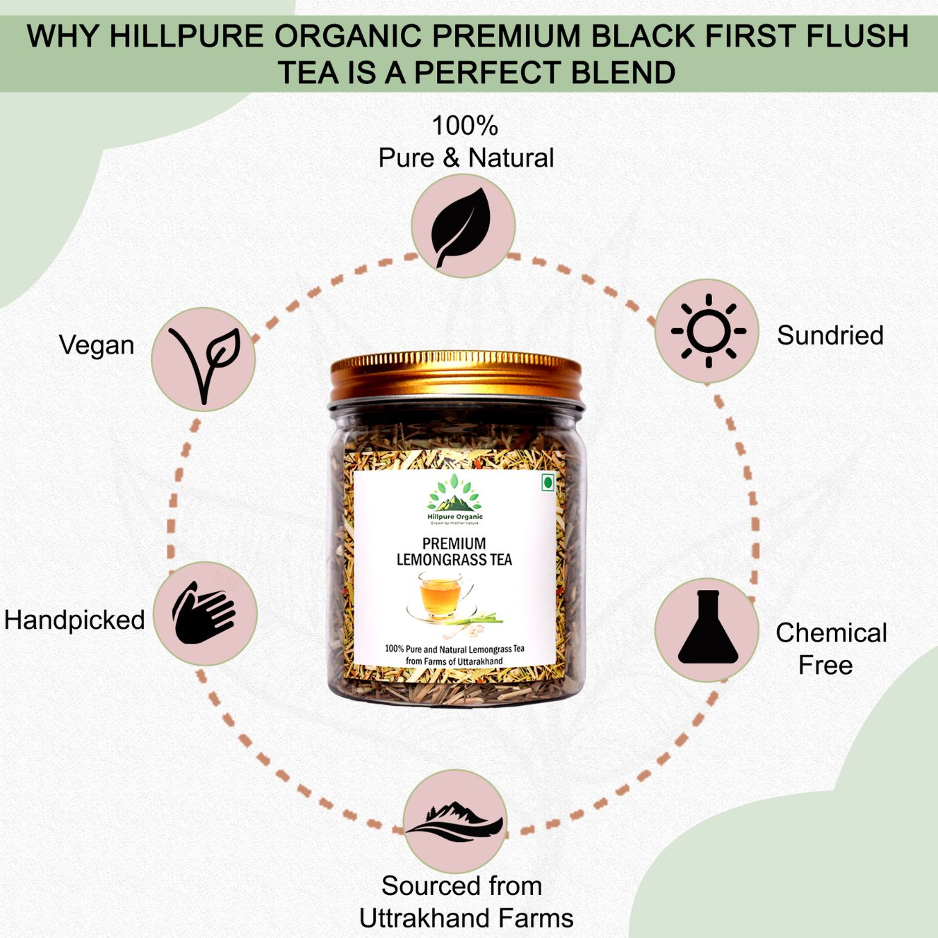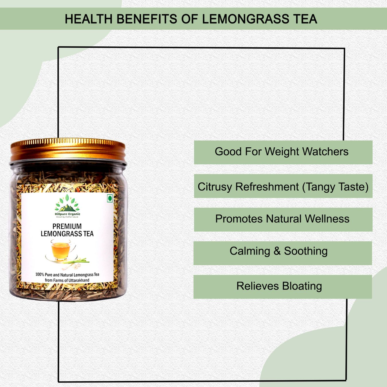 Hillpure Organic Premium Lemongrass Tea Leaves, Boost Metabolism, Body Detox 100% Pure & Authentic, From Uttarakhand Hills (75 + 75 gm), Pack of 2
