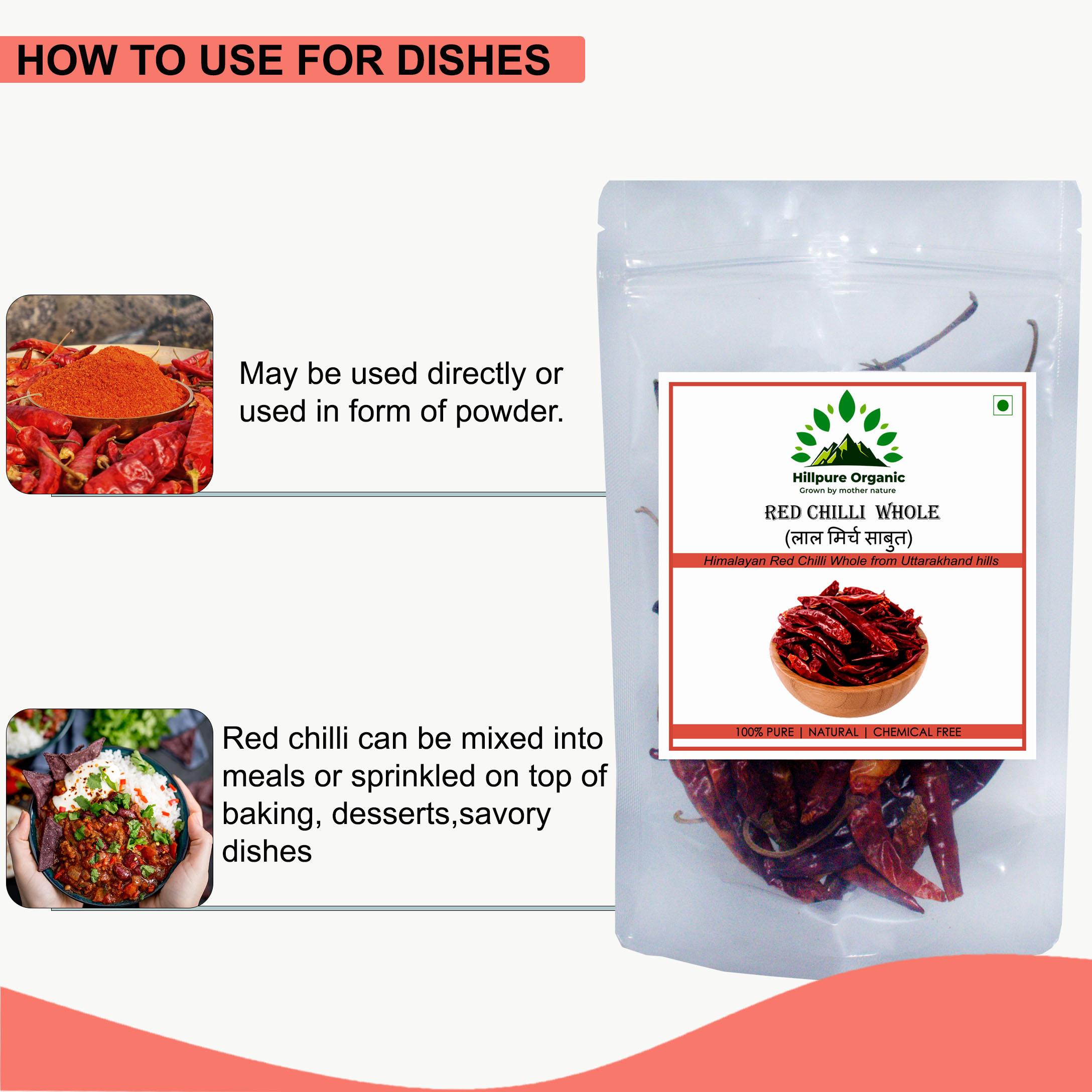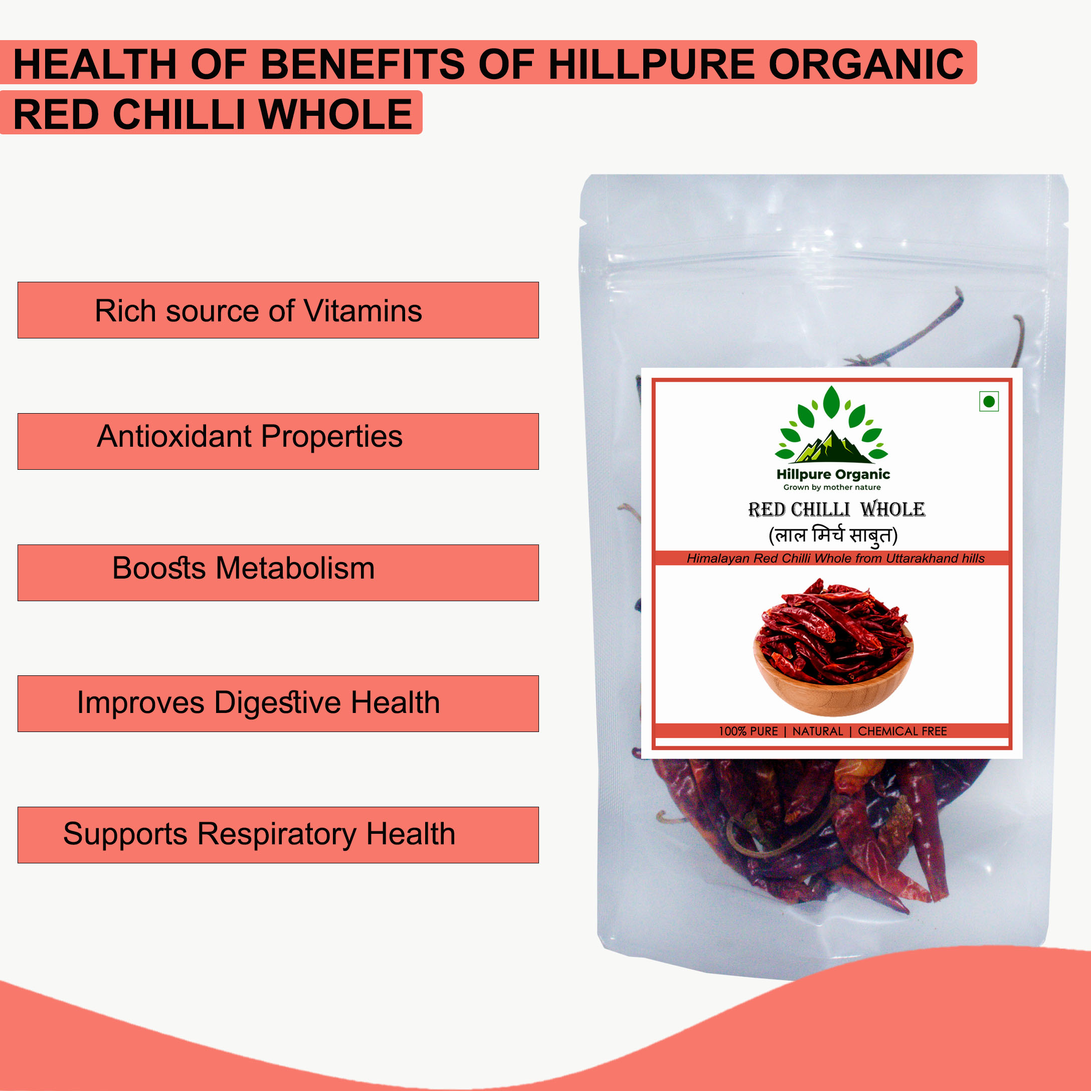 Hillpure Organic Whole Red Chilli | 100 gm | Sabut Laal Mirch | Himalayan Whole Chilli | Whole Spices