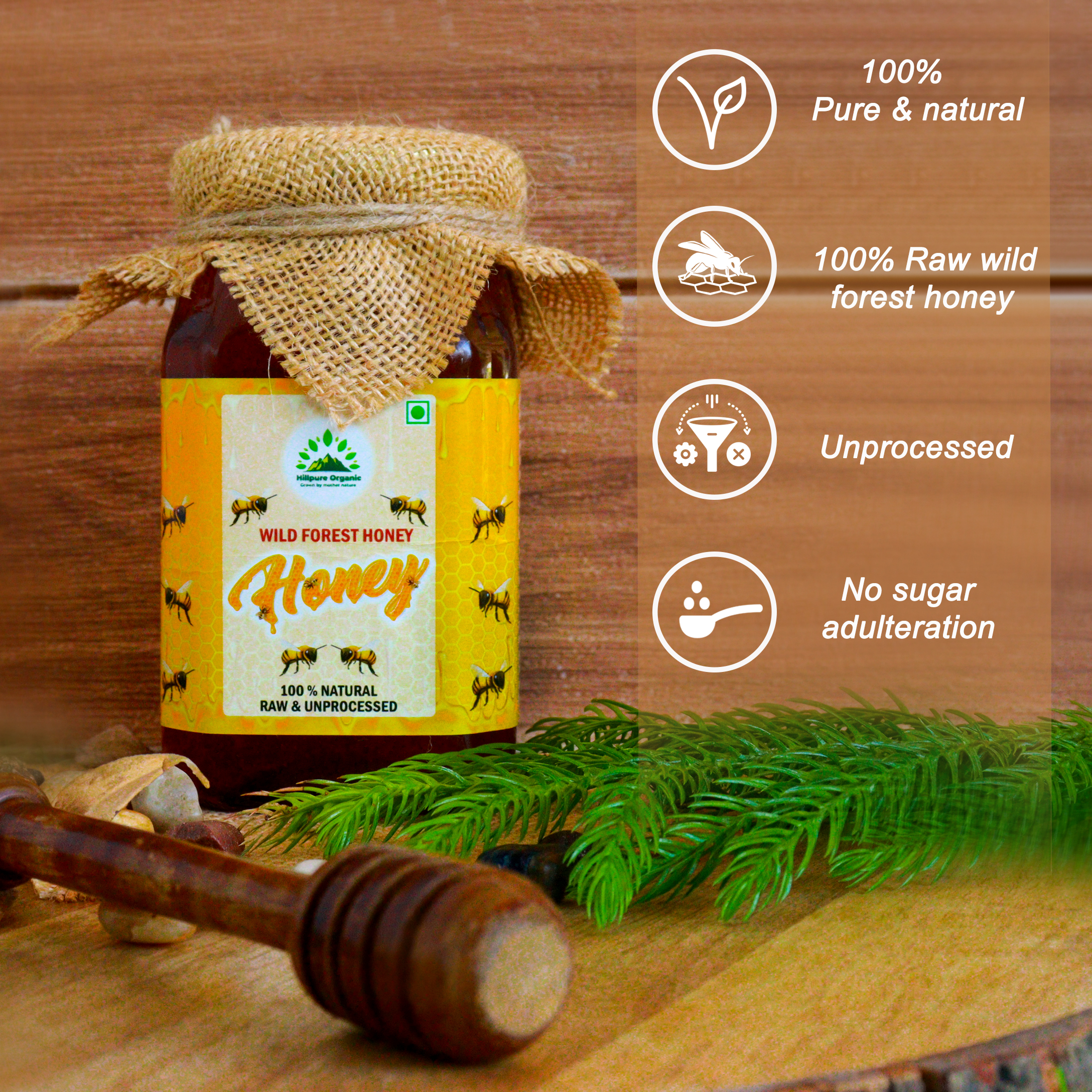Hillpure Organic Wild Forest Raw Honey | Himalayan Forest raw honey |100% Pure And Natural Unprocessed Honey | Uttarakhand Forest Raw Honey (500 gm, Glass Bottle)